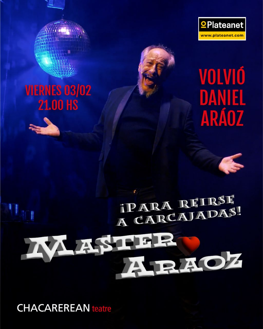De acuerdo con el actor, “MasterAráoz es una clase de comicidad cuyo objetivo es que el público se ría y pase un momento único. El desafío es que toda la familia concurra a un espectáculo popular para reírse a carcajadas. Allí recorreré diferentes anécdotas de mi vida: El Cañón y el Enano, La curva del Caballo Blanco a 100 km/h, El Peinado Bombé, El Mago y el Whisky; recién llegado a Buenos Aires, mi éxito en la televisión y mi posterior fracaso volviendo a la casa...de mis VIEJOS. Con un final emotivo donde lo más importante es la familia, MasterAráoz es un espectáculo auto referencial para reírse sin parar. No te lo pierdas”.