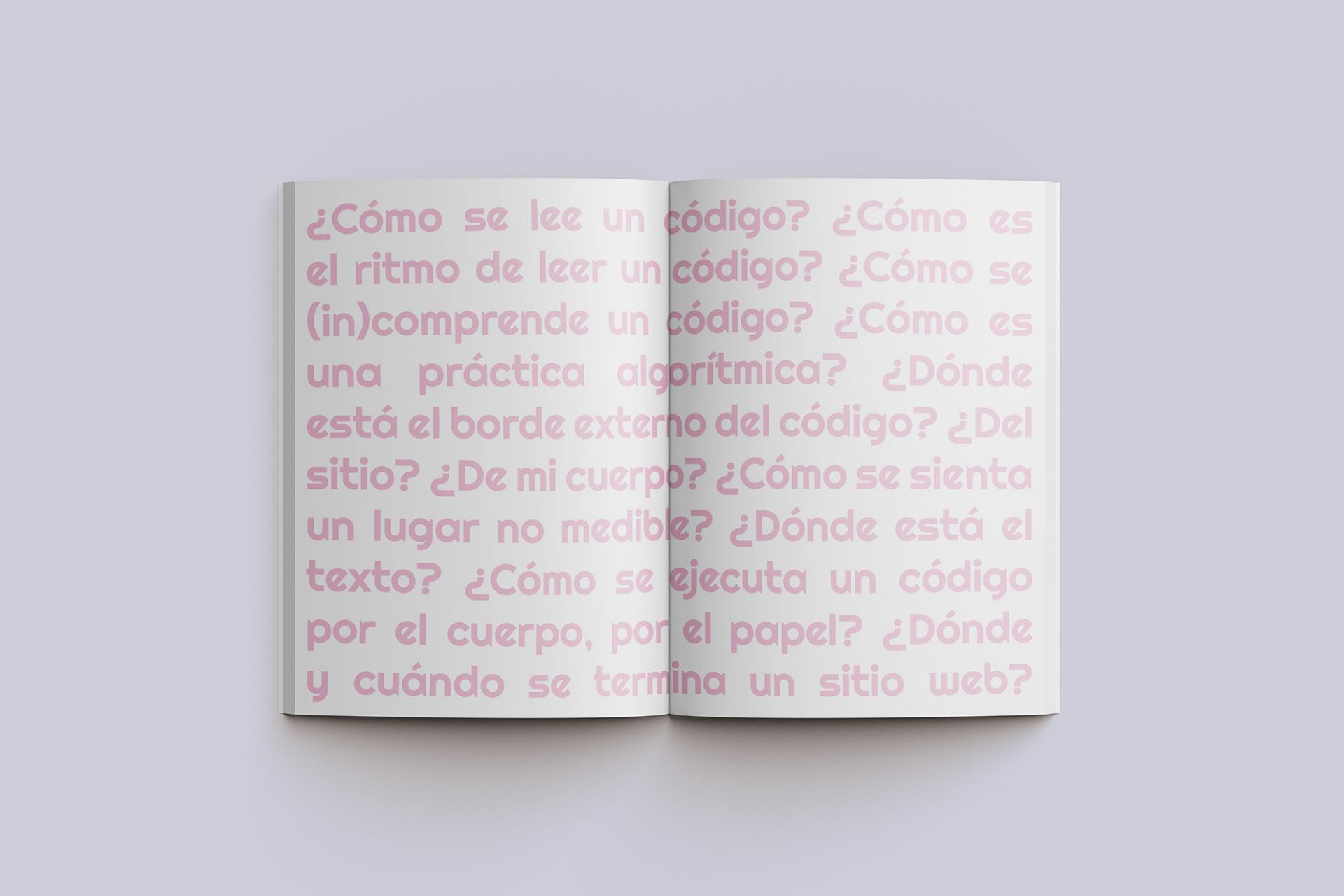 A su vez detalló: "En todo el libro trabajo el lenguaje de código. Para mí es pensar y escribir en ese lenguaje. Tengo performances, porque bailo, y estoy dentro del código bailando ahí también”.