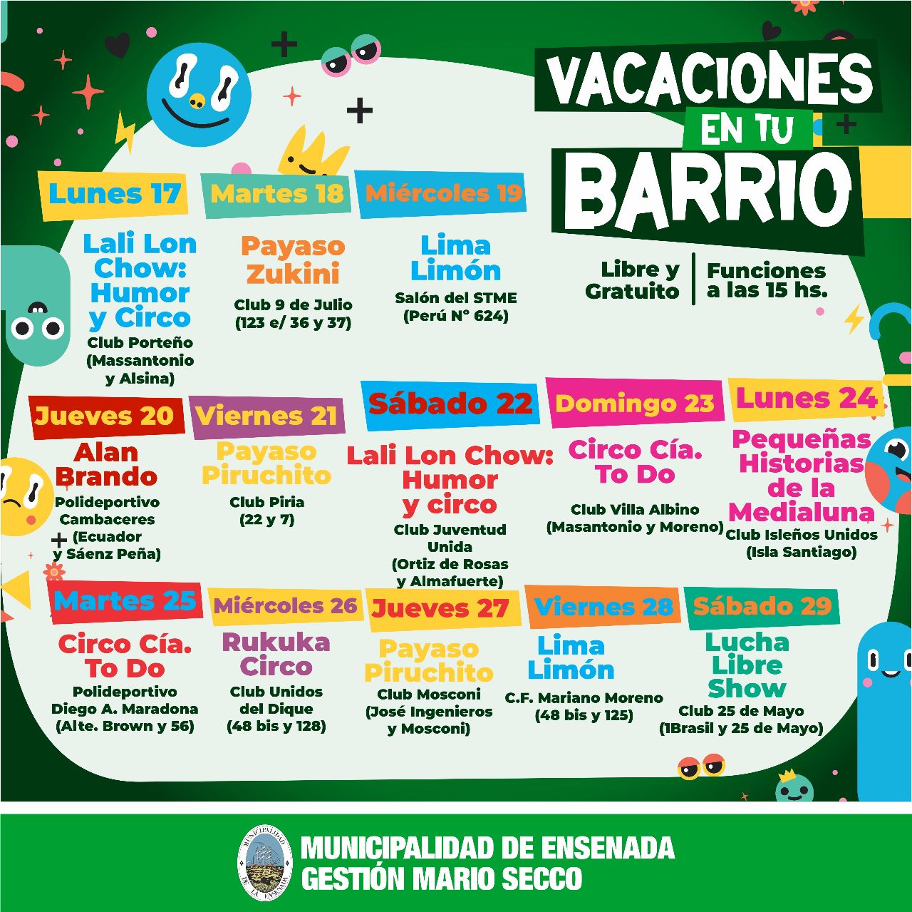 Asímismo resaltó que "son 26 propuestas en las que podrán disfrutar desde magia, música, circo, distintos tipos de espectáculos como títeres y talleres en los clubes, distinguidos por edades”.