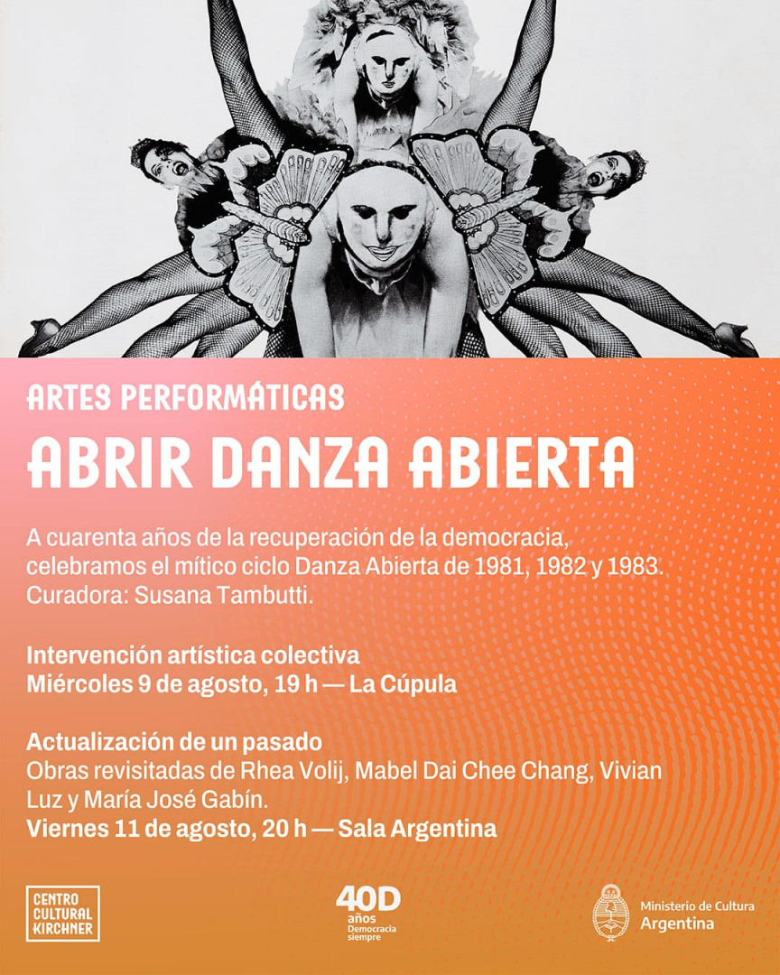 La curadora del ciclo expresó que en este caso "es una propuesta de dos jornadas que evoca el mítico ciclo llamado Danza Abierta que entre los años 81 y 83 desafió a la dictadura militar argentina".