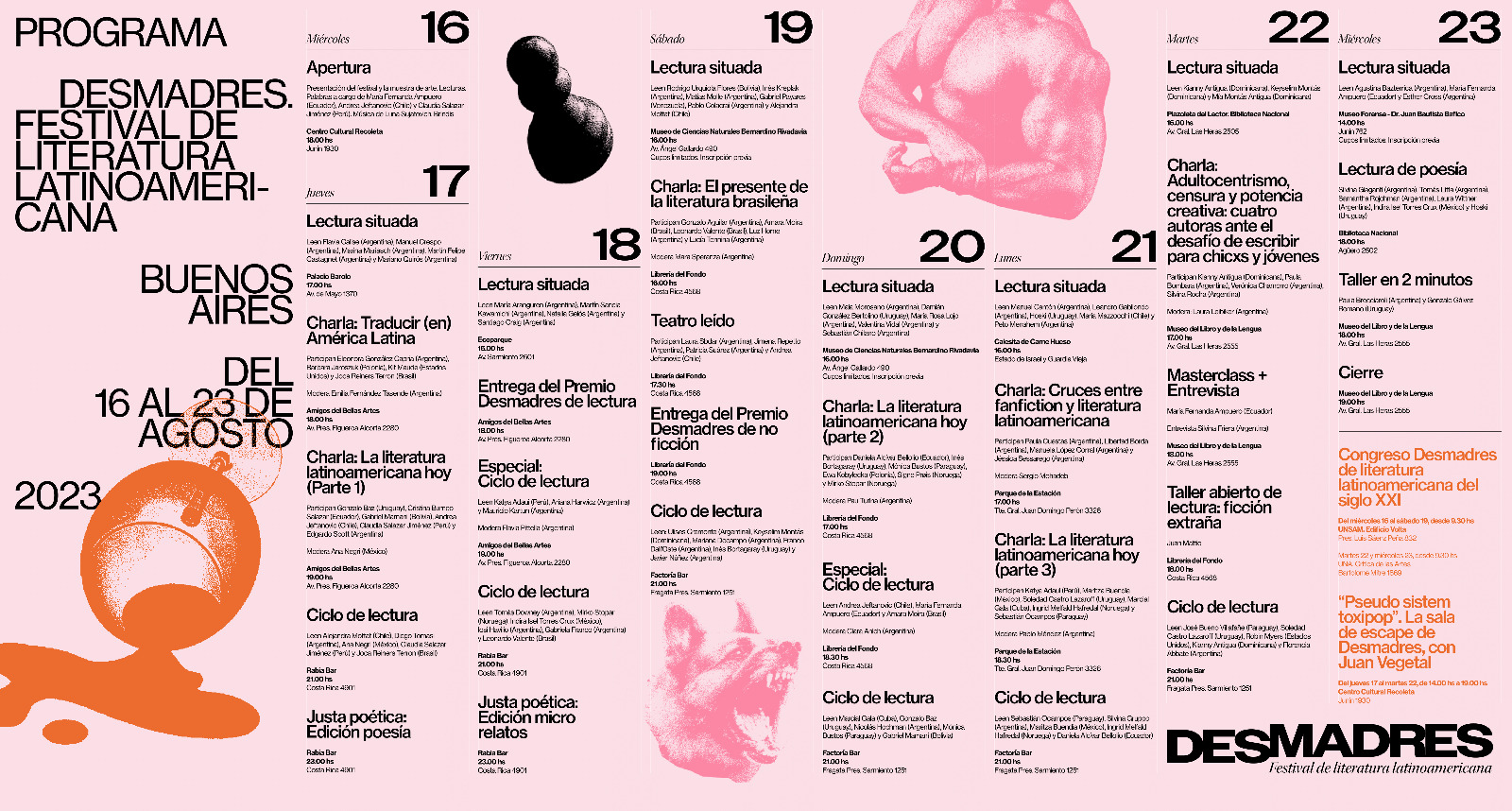 Por último, Andrea Jeftanovic contó que se presentará en Desmadre , "Es un festival con distintos formatos, en el que se lee en lugares cerrados y abiertos, a mi me toca desde una reposera hablar de literatura latinoamericana. Son 18 sedes, durante 10 días, en la Ciudad de Buenos Aires, donde se hará lecturas en lugares atópicos", concluyó.