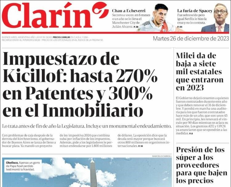 El ministro de Hacienda y Finanzas de la Provincia de Buenos Aires, Pablo López, cuestionó el titular del diario Clarín con fecha de hoy, donde titularon: “Impuestazo de Kicillof: hasta 270% en patentes y 300% en el Inmobiliario”.