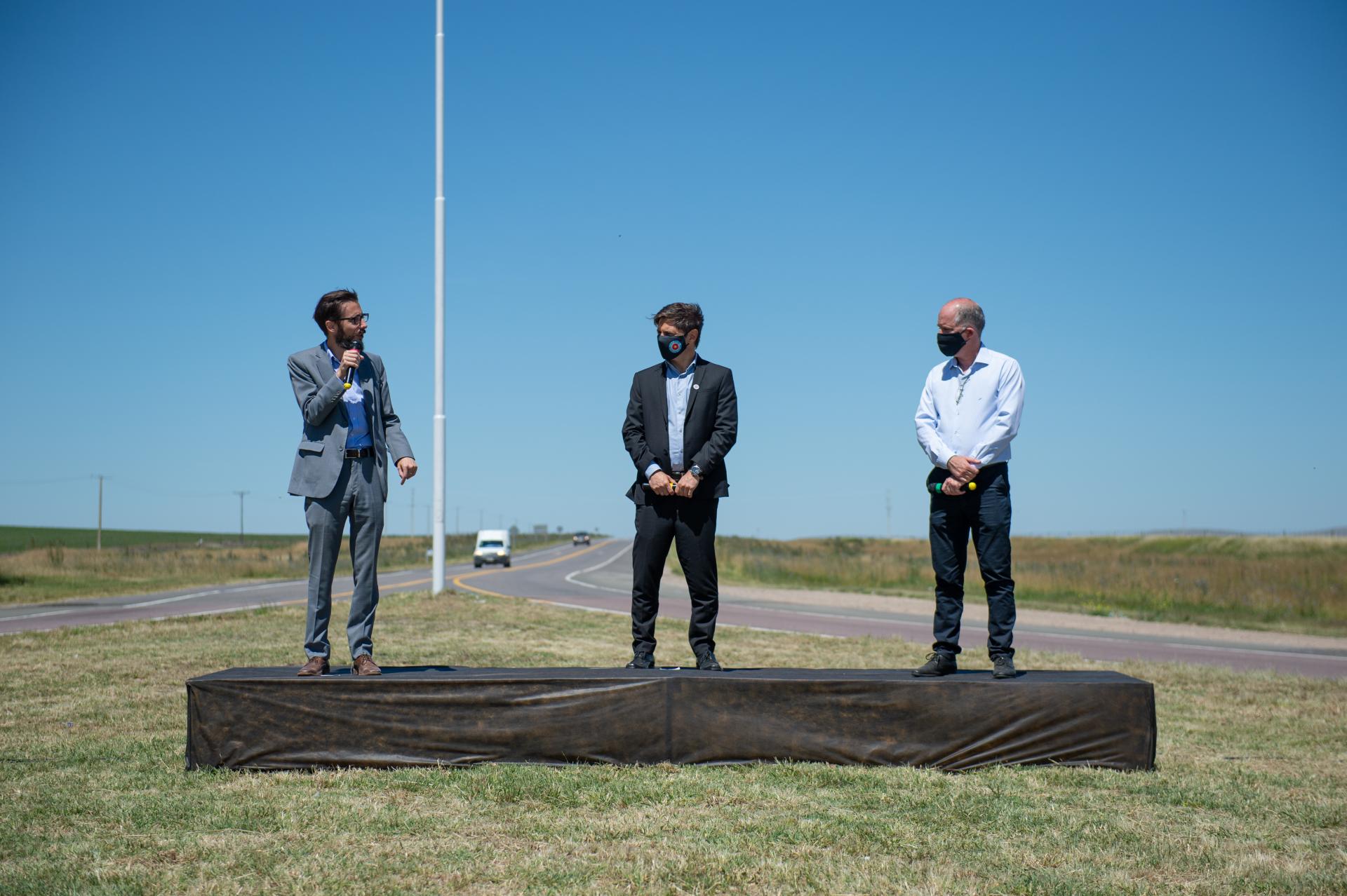 El gobernador de la Provincia, Axel Kicillof visitó hoy la localidad de Coronel Pringles y dejó inaugurado la repavimentación y ensanche de un tramo de la Ruta Provincial N°51.