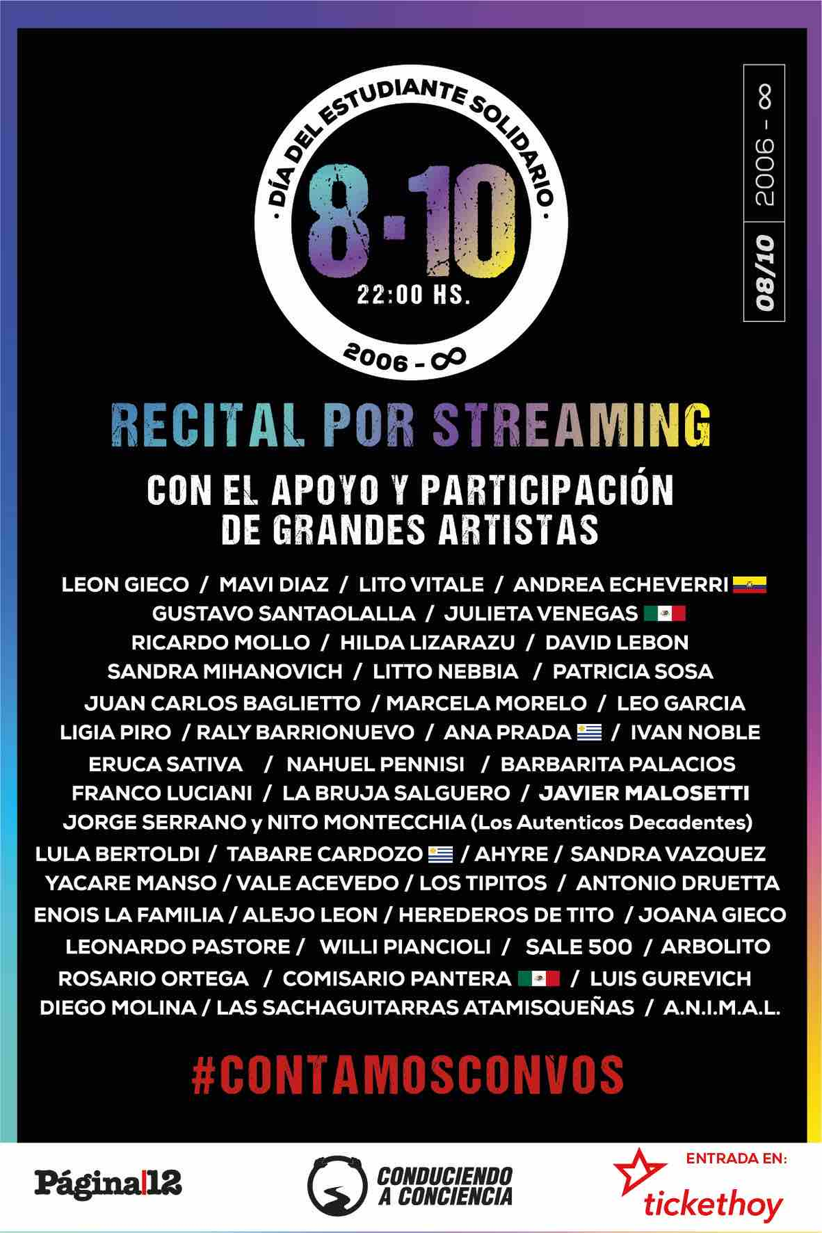 Finalmente valoró el compromiso solidario de los 50 artistas que protagonizarán el evento e invitó a la comunidad a participar. Se dispondrán tres valores de acceso consciente, desde $.600.- $.800. y $.1.200.- para que el público -dentro de sus posibilidades- pueda elegir el importe de su entrada y colaboración.
