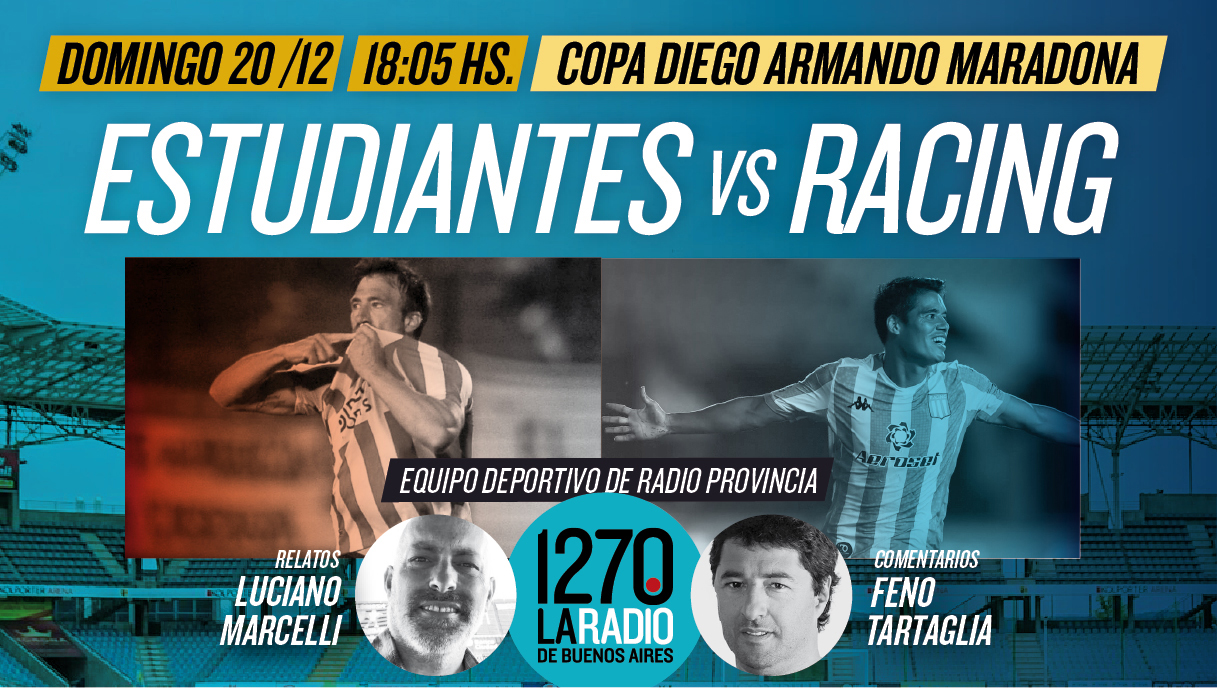 La Copa Maradona se juega en Radio Provincia. Hoy transmitimos dos partidos en continuado, desde las 18. Empezamos en La Plata con la previa de Estudiantes vs. Racing y vivimos el partido con relatos de Luciano Marcelli y comentarios de Feno Tartaglia, del Equipo Deportivo de la radio pública bonaerense.