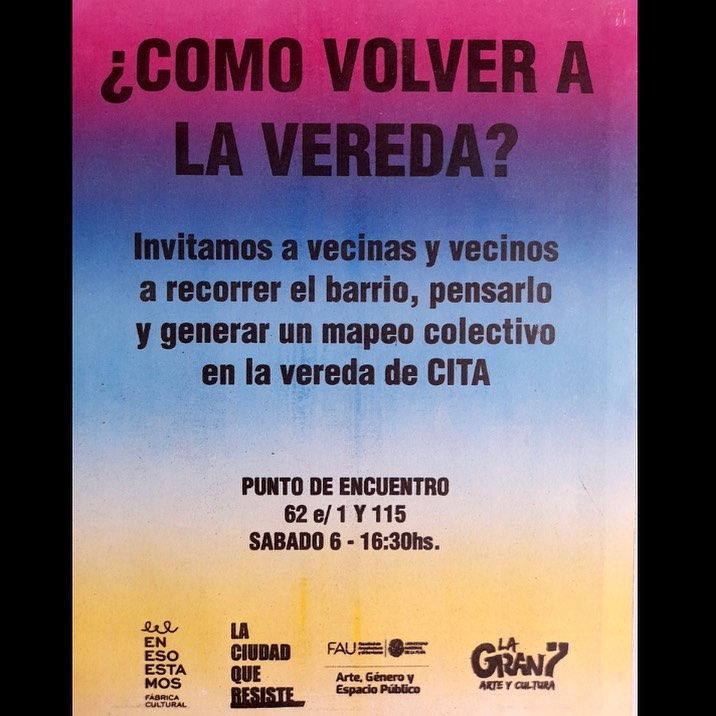 Con un recorrido por el barrio El Mondongo, el colectivo Territorio Tolosa junto a los centros culturales "En eso Estamos" y "La Gran 7" convocan este sábado 6 de noviembre desde las 16:30hs, para pensar las veredas colectivamente.