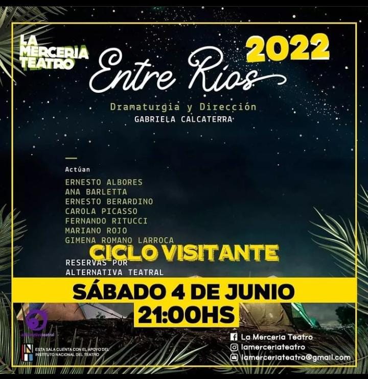 En esta oportunidad, el "Ciclo Visitante" inicia con "Entre Ríos" obra con dramaturgia de Gabriela Calcaterra y un gran elenco. Las entradas pueden adquirirse a través de Alternativa Teatral o por medio de las redes sociales del teatro.