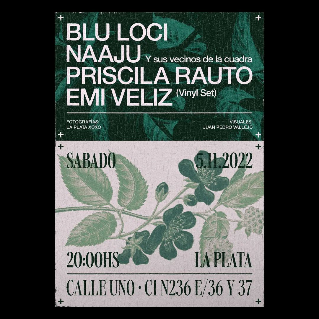 El concierto que Blu Loci brindará esta noche desde las 20 horas tendrá la participación de Priscila Rauto (cantante de Las Bermudas), Naaju y sus vecinos de la cuadra, y Emi Velis que “pinchará” vinilos con discos de los años 80 y 90.